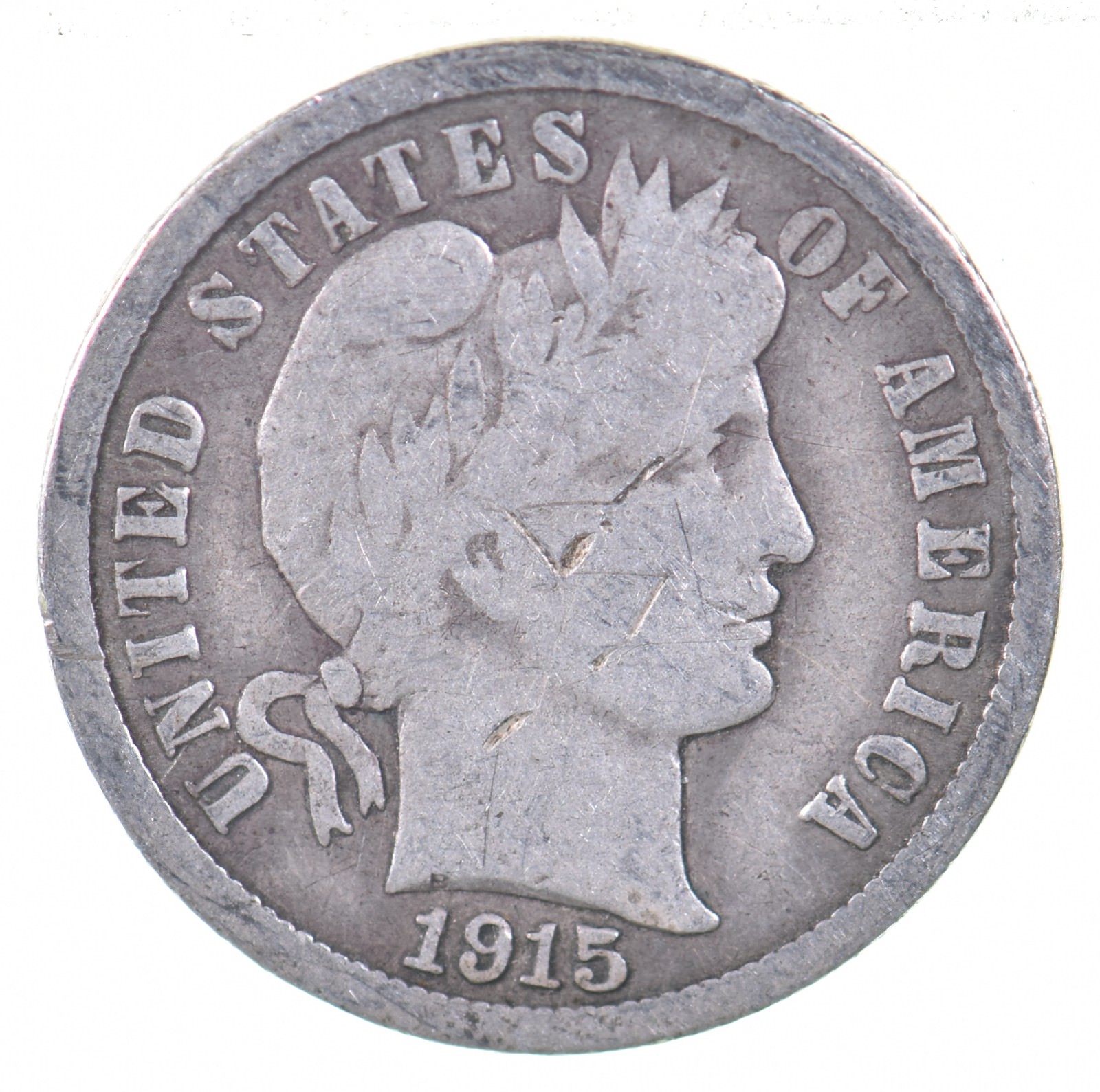 Barber Dime 1915 Silver Gun Runners