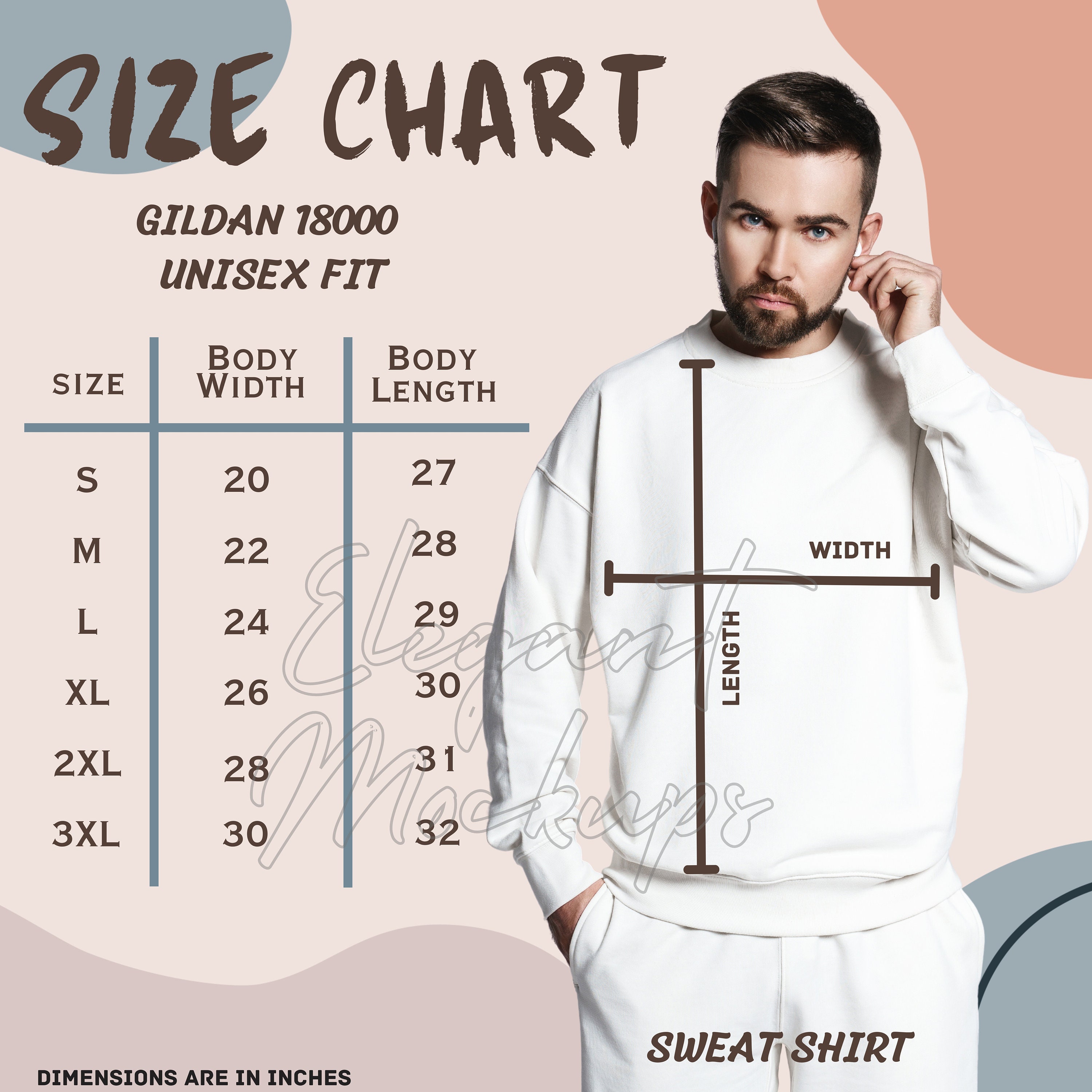 Gildan 18000 Color Chart, Gildan 18000 Size Chart Included, G180 Color