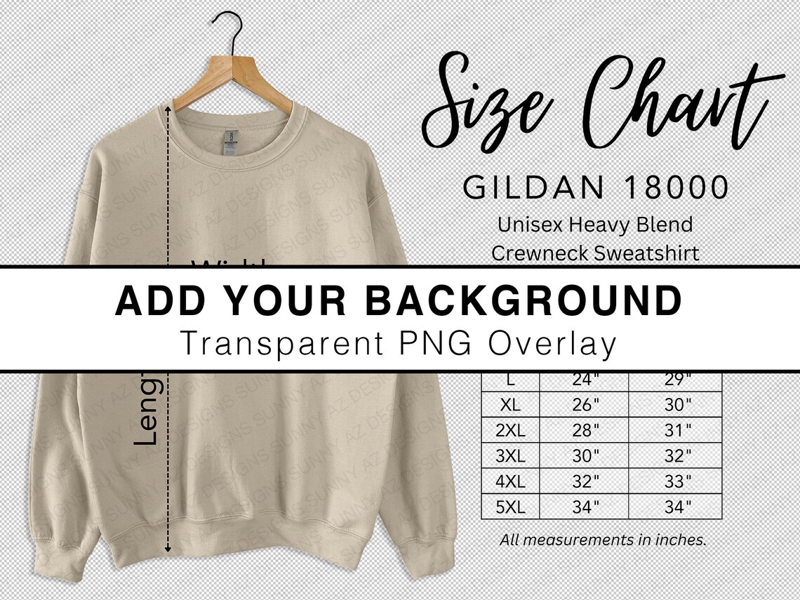 Gildan 18000 Size Chart, Size Chart Mockup, Sweatshirt Mockup