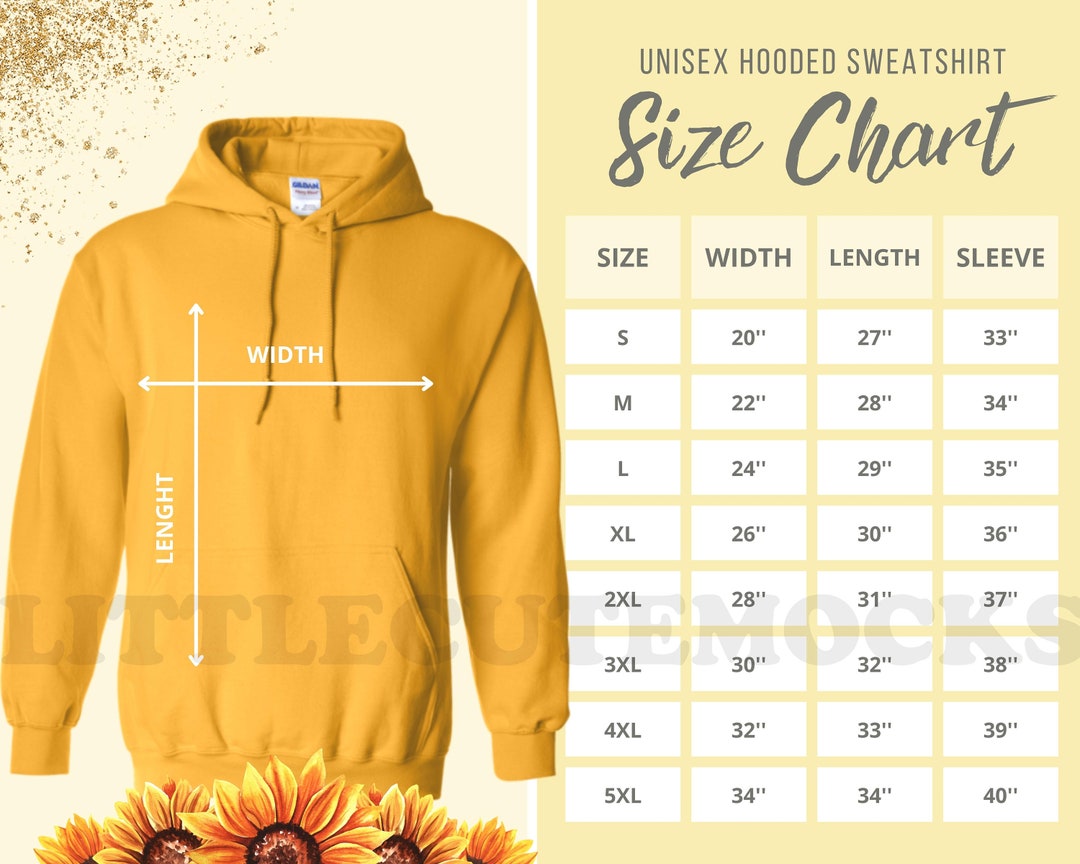 Gildan 18500 Size Chart Size Chart Mockup Hooded Sweatshirt Sizing