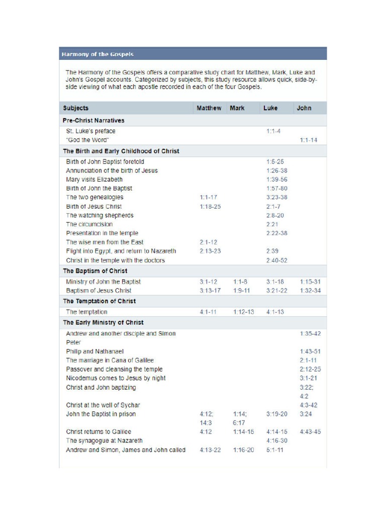 Harmony of the four gospels chart Artofit